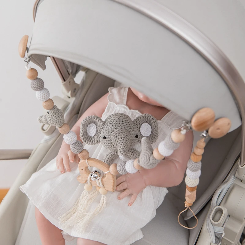 - Teether och bebiselelement som fungerar som mobil- eller vagnsleksak