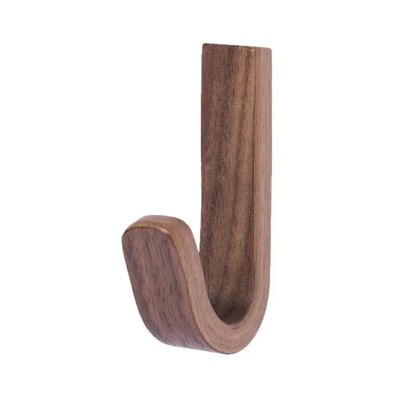 Denna krok i valnötsträ erbjuder en platsbesparande upphängningslösning som fästs direkt på väggen utan borrning. Med en enkel, stilren design kan du hänga handdukar, kläder, nycklar eller små väskor.