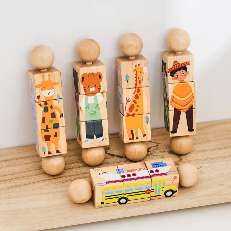 1 styck trärassel för bebis – roterande matchningsblock och pussel (Montessori-inspirerad leksak)
