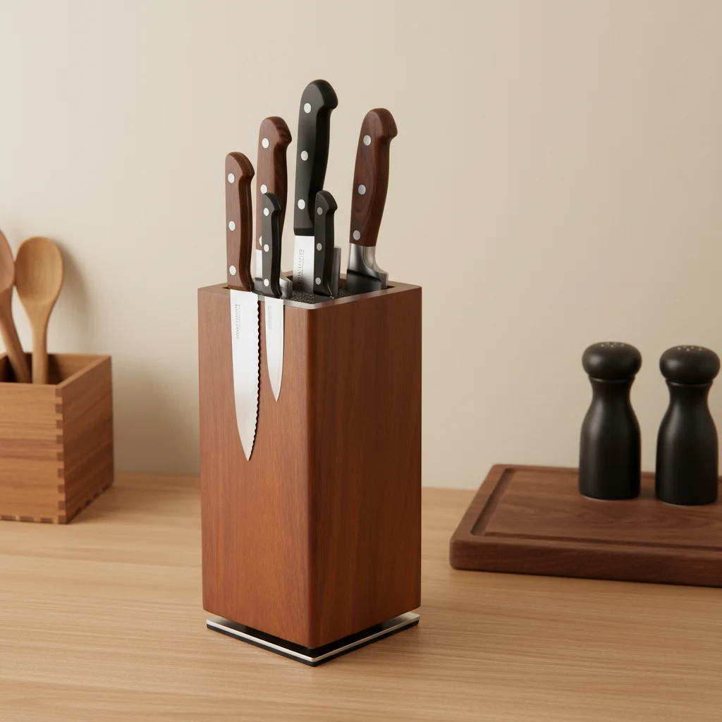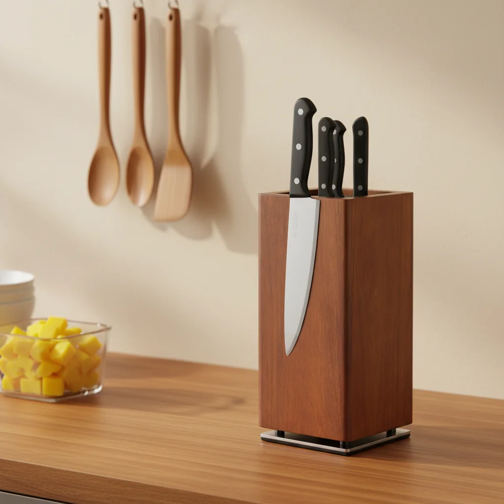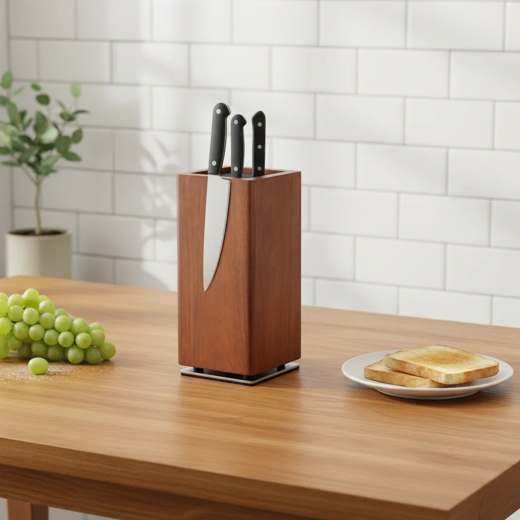 Nyckelfunktioner: 360° rotation för enkel åtkomst; fritt placerbara knivar oavsett form; förvaring som kombinerar estetik och funktion i köket.