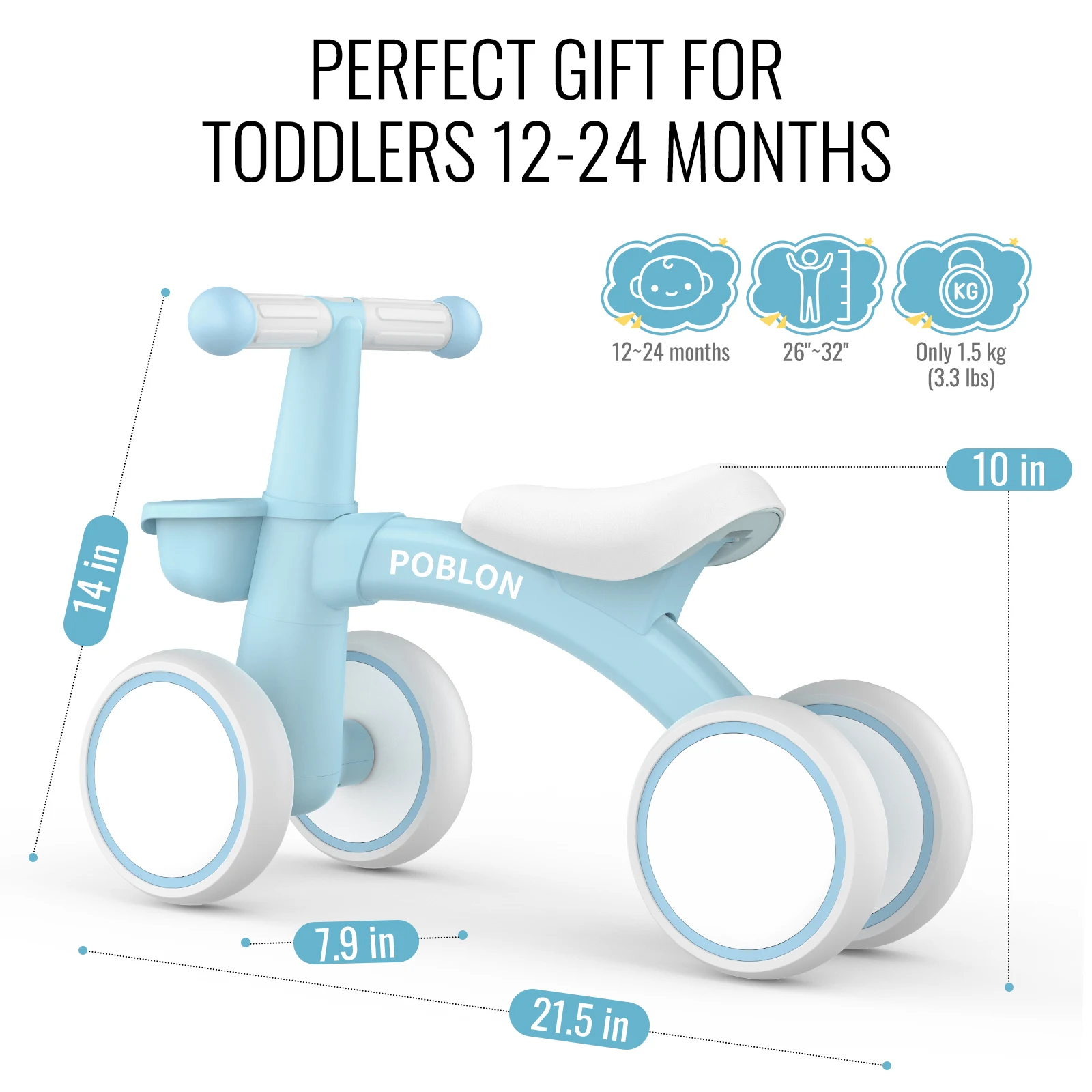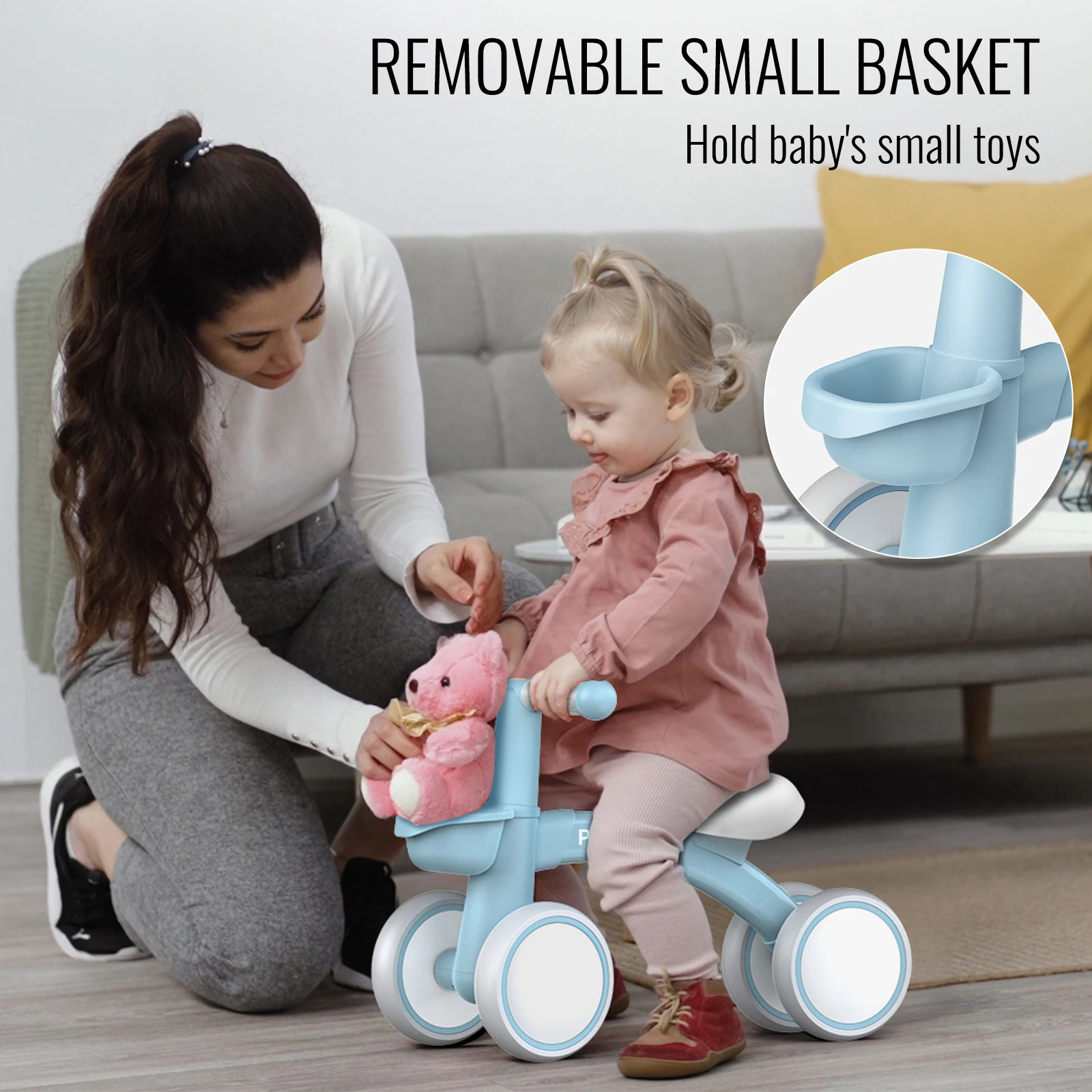 Denna pedalfria balanscykel med fyra hjul ger stabilitet och trygghet när barnet övar balans. Tillverkad av blank plast med mjukt rundade kanter och en låg sits som passar små ben.