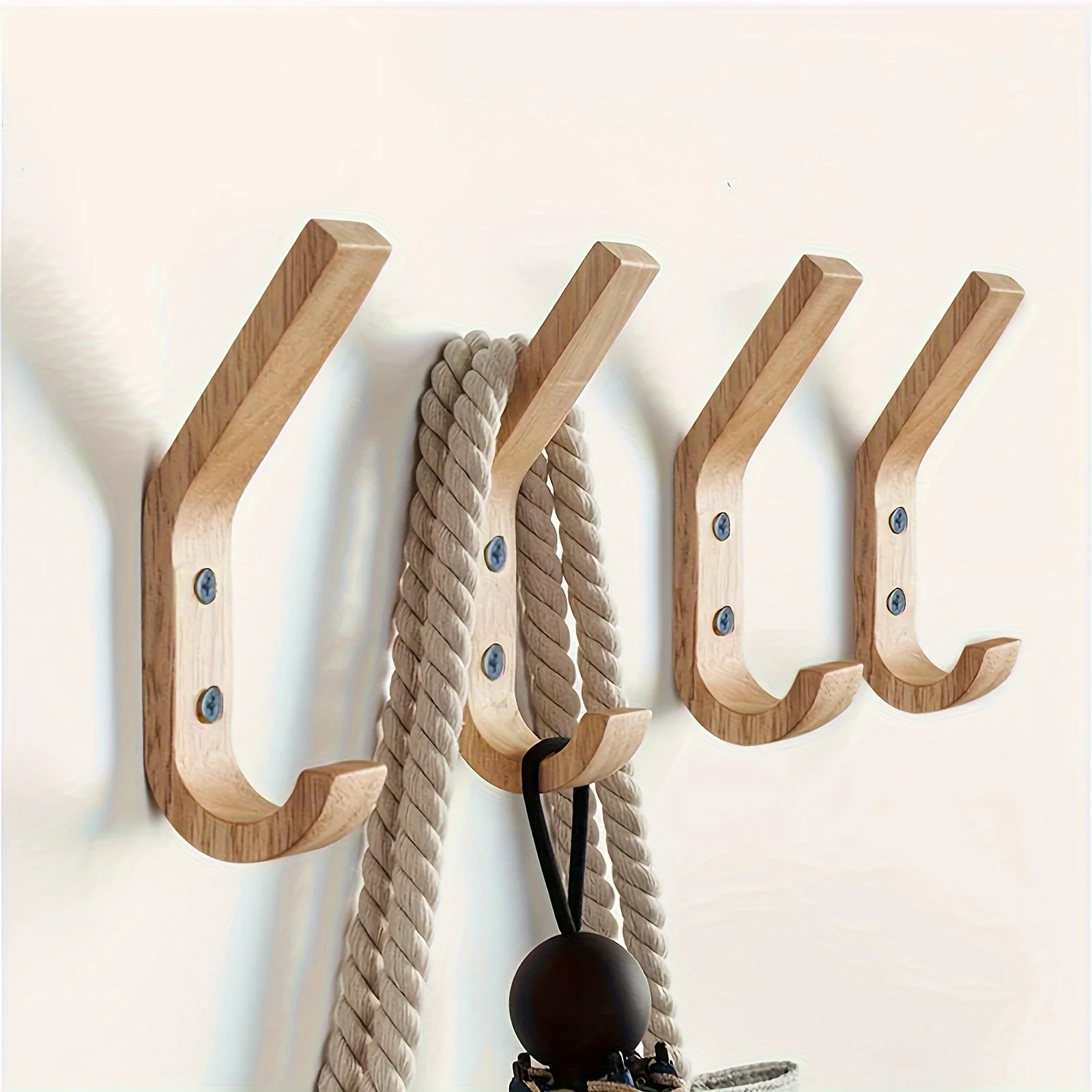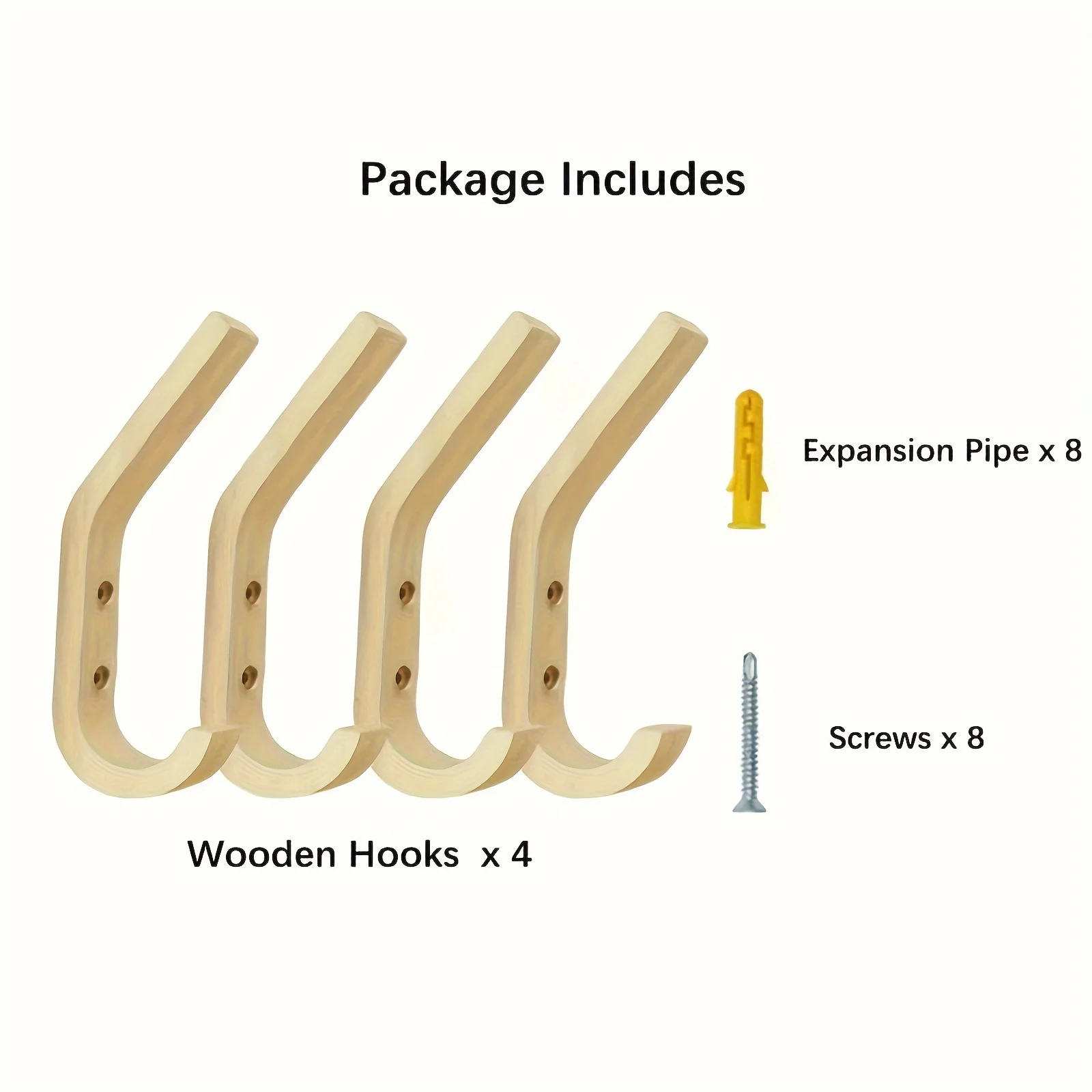 Praktiska väggkrokar i naturlig ek som kombinerar funktion och stil. Setet består av fyra identiska krokar som kan användas för kläder, väskor och accessoarer i hallen, sovrummet eller andra rum.