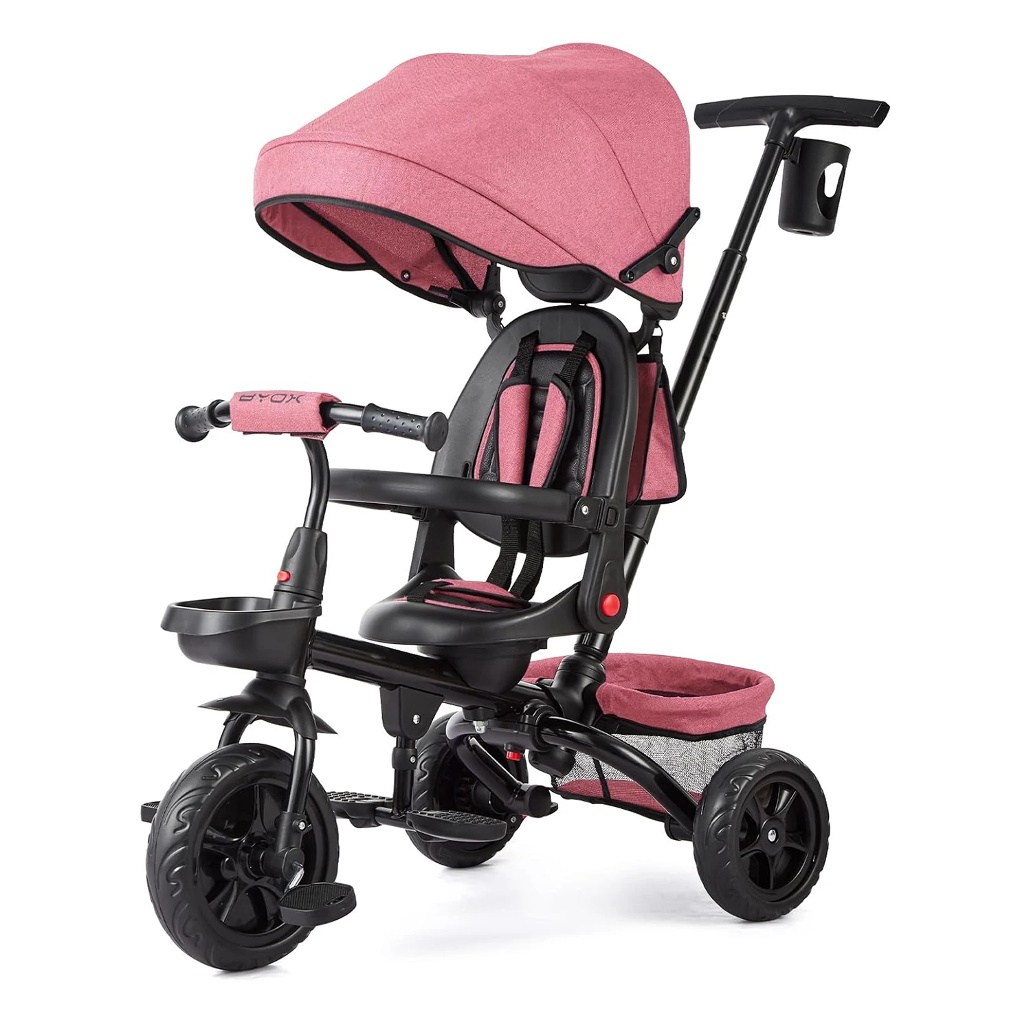 6-i-1 Trehjuling/Barnvagn med vändbar sits och pedaler – hopfällbar design för barn från cirka 9 månader till 5 år