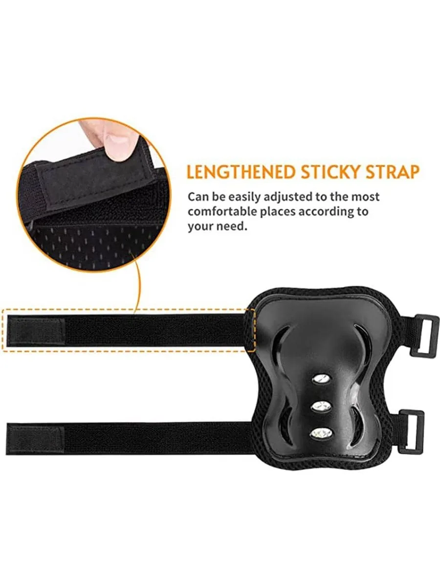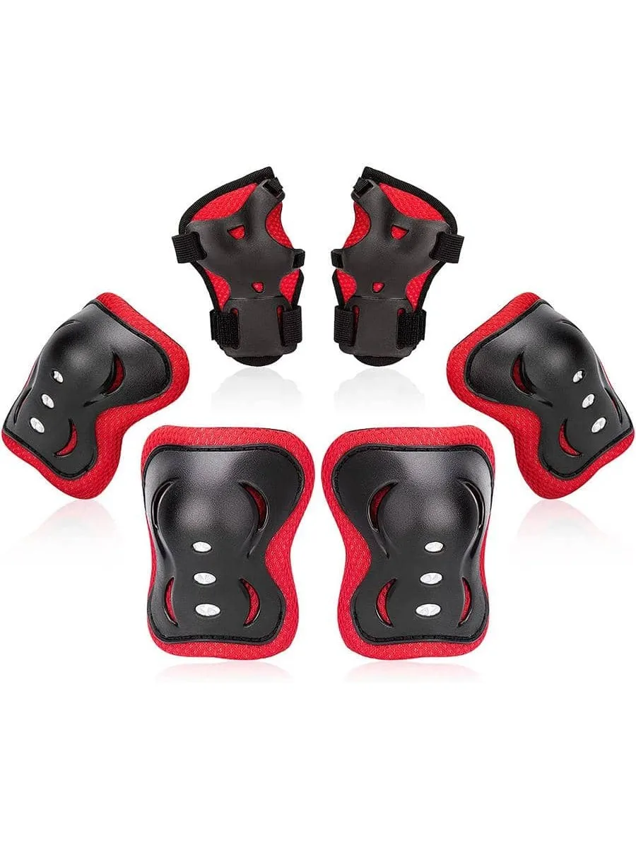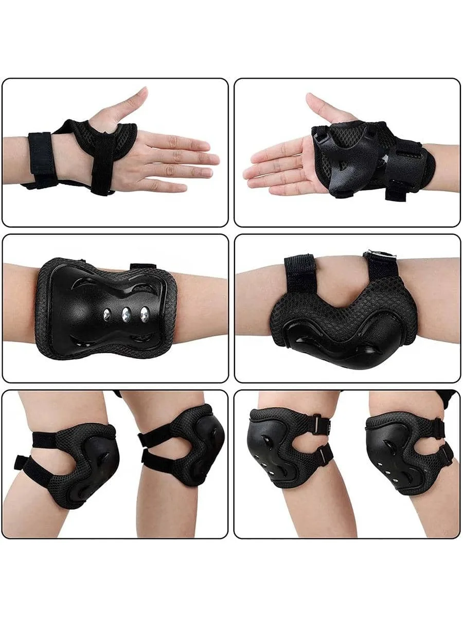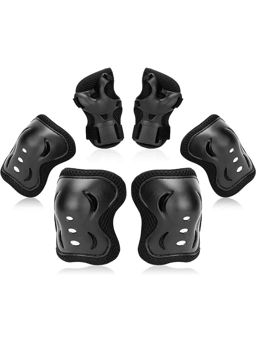 - 6 delar: 2 knäskydd, 2 armbågsskydd och 2 handledsskydd
