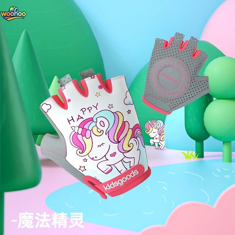 Färgglada och smidiga barnhandskar som ger bättre grepp och skydd vid cykling, sparkcykel eller lek på rullbräda. Den fingerlösa designen gör dem luftiga och rörliga samtidigt som mjuk vaddering över knogarna ger extra dämpning mot stötar.