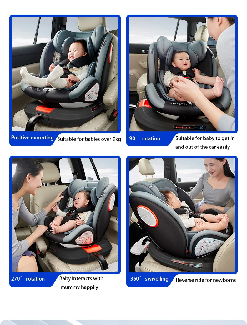Funktioner inkluderar ett fempunktsbälte för bättre fördelning av krafter över axlar, höfter och ben, en ergonomisk design som följer barnets kropps konturer samt ett justerbart huvudstöd som anpassas efter barnets höjd. ISOFIX-kompatibilitet gör installationen enkel och stabil.