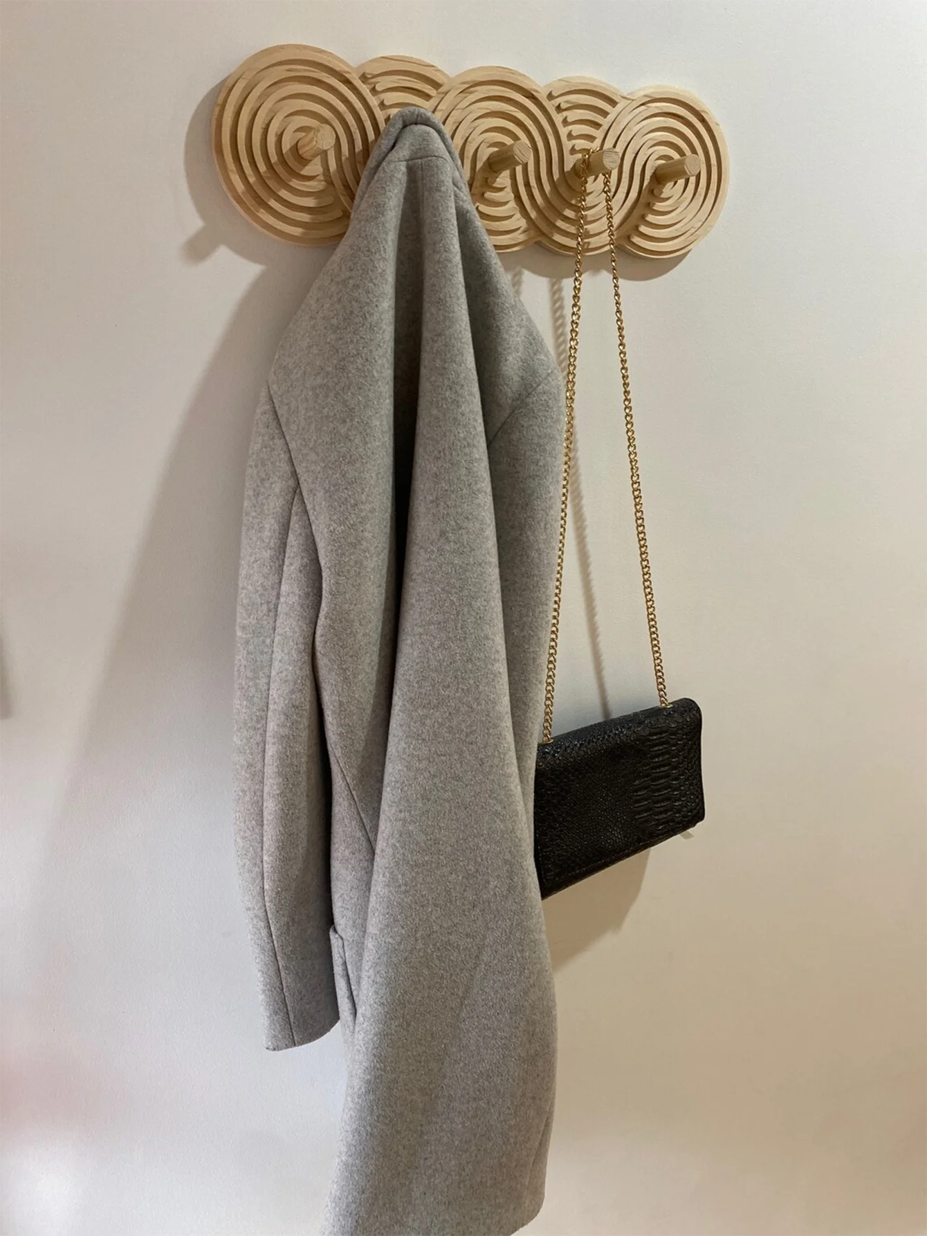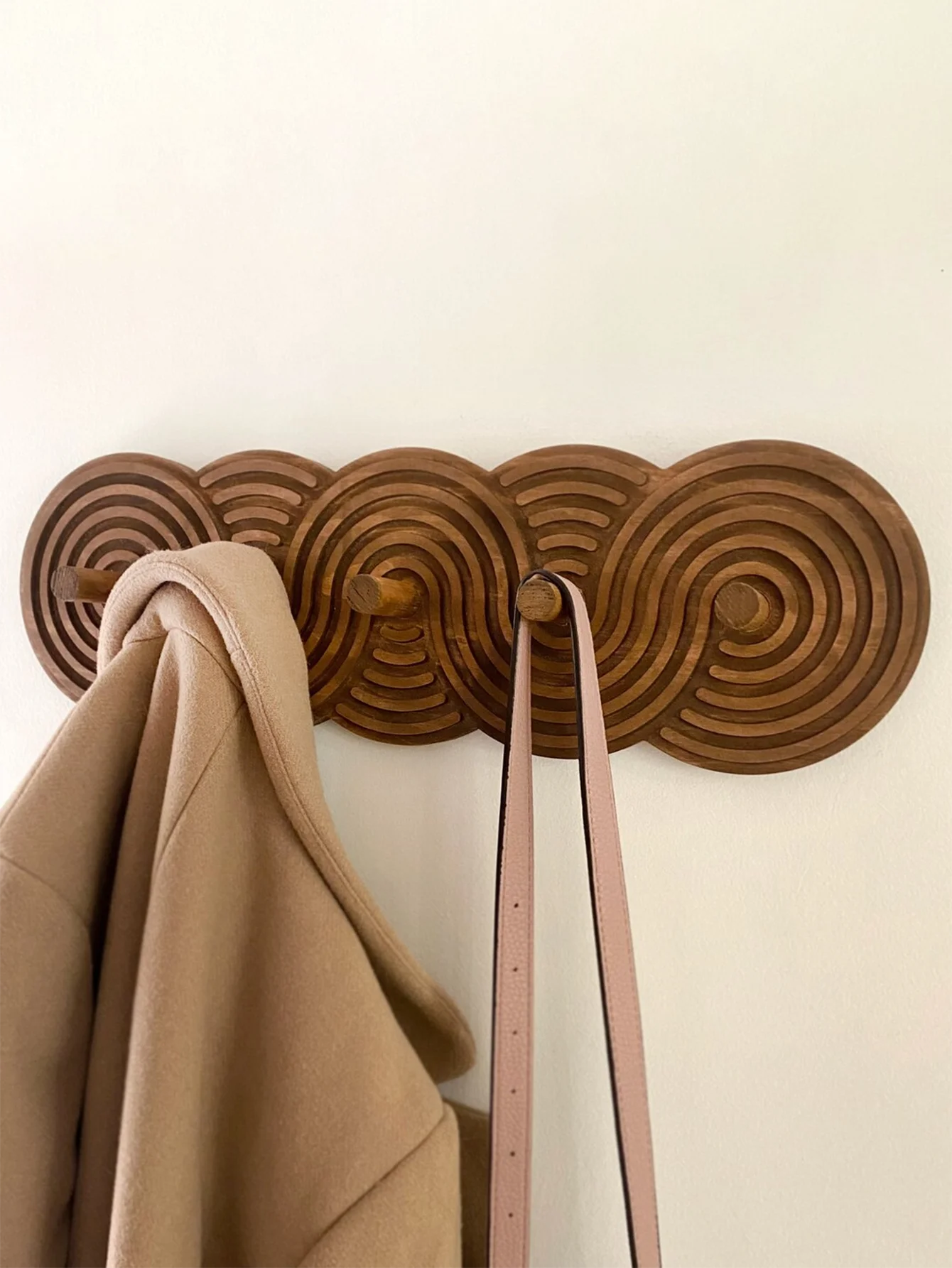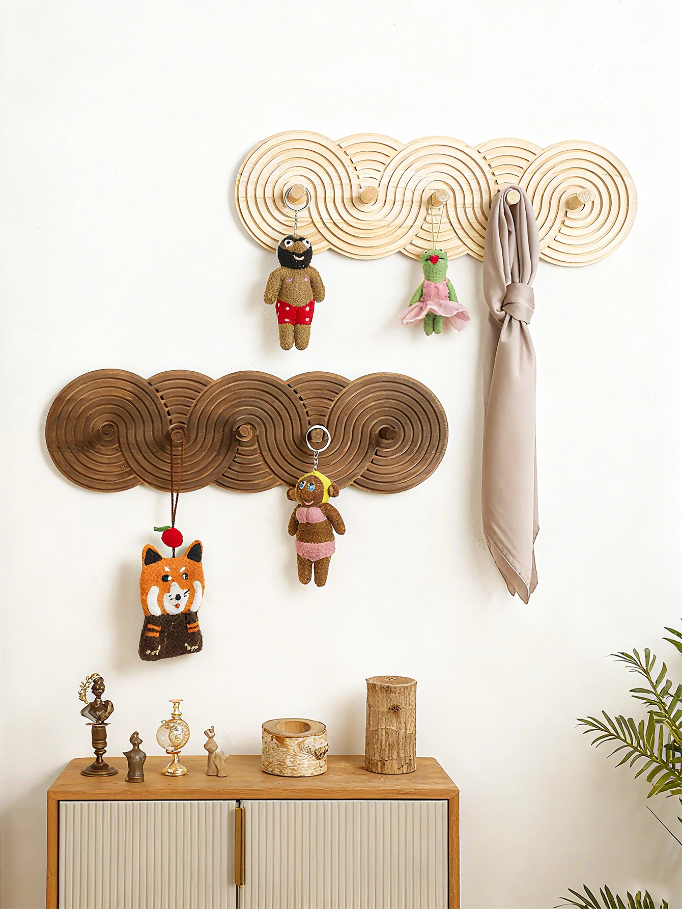 Boho träväggkrok med spiralmönster – femkrokar för entré och sovrum
