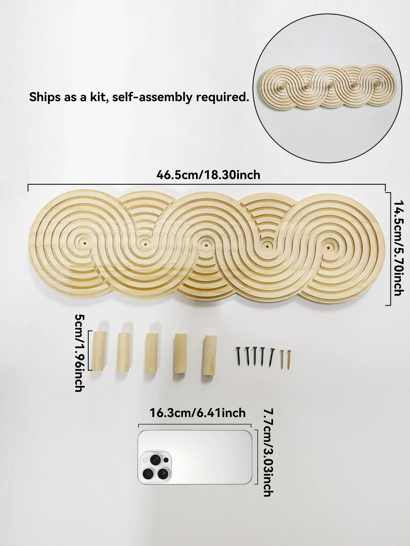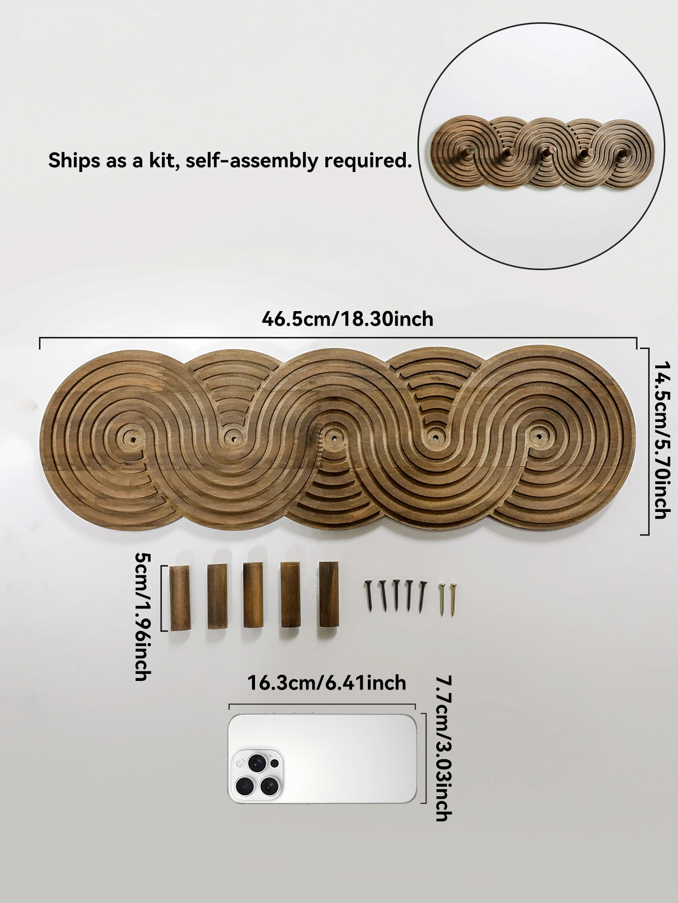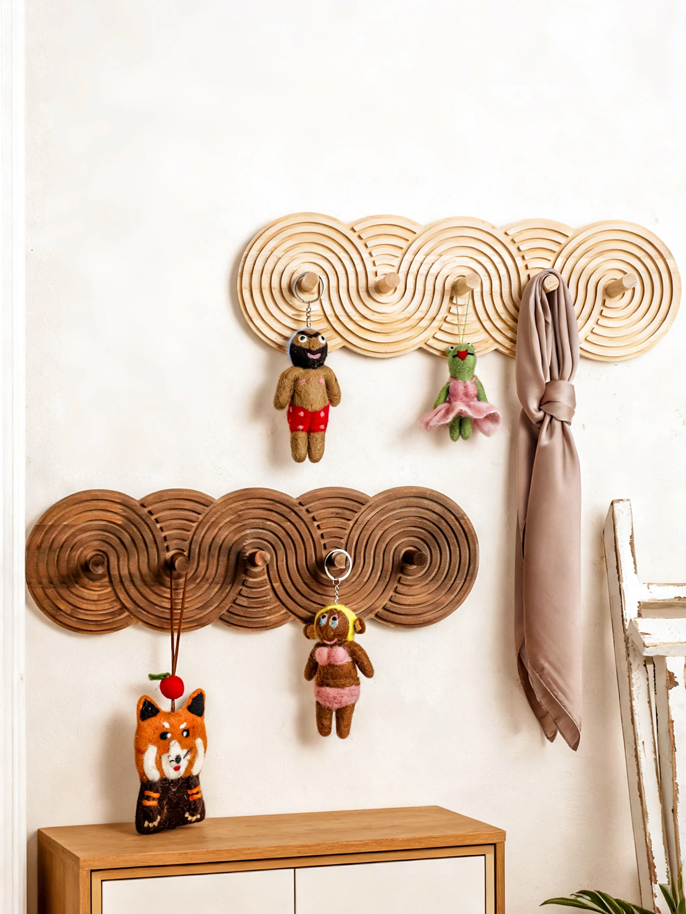 Boho träväggkrok med spiralmönster – femkrokar för entré och sovrum