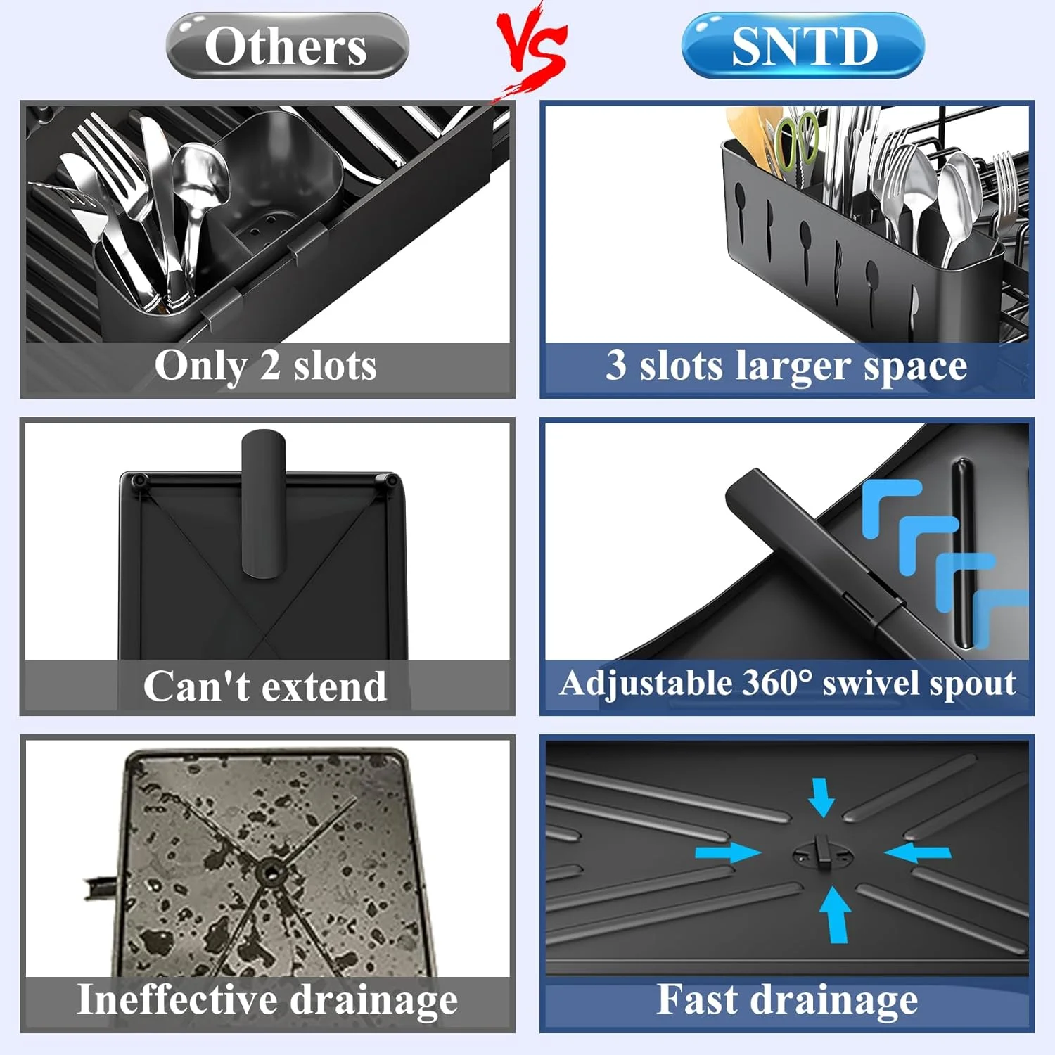 Diskställ för köksbänken med avloppsbräda – Stort rostfritt diskställ med bestickhållare