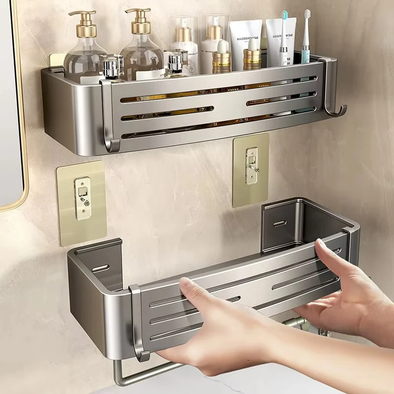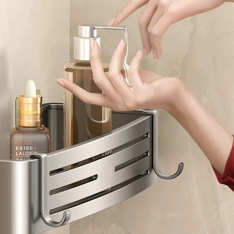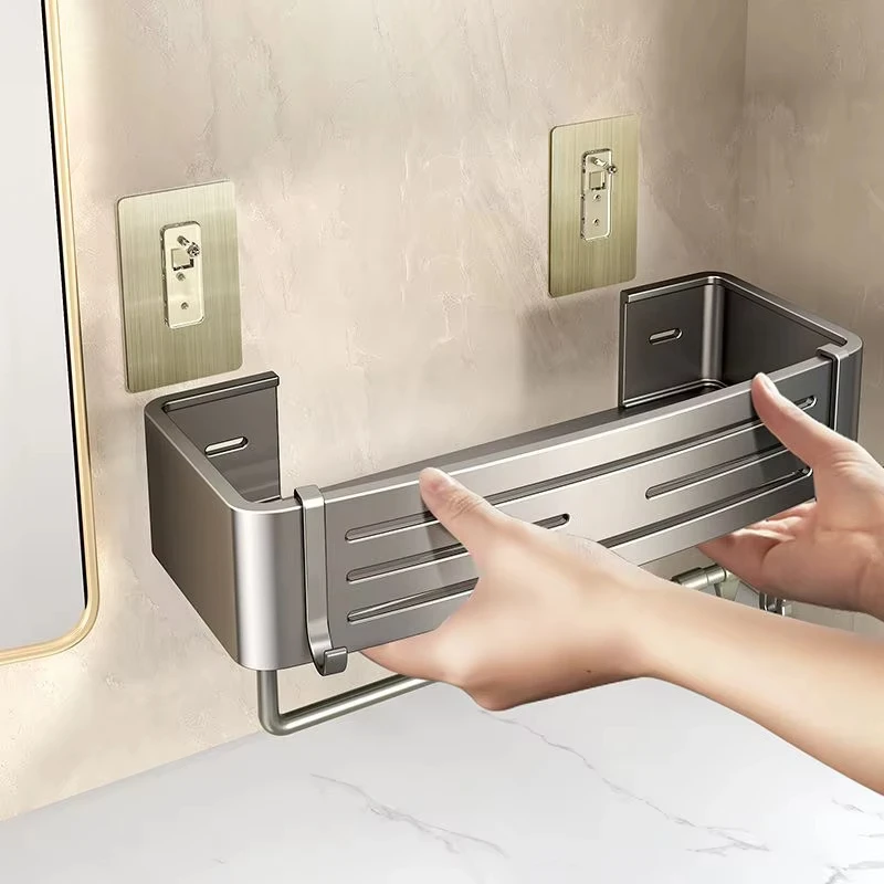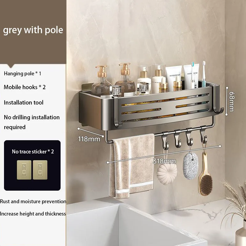 Denna väggmonterade duschhylla installeras utan borr och passar både små och medelstora badrum.