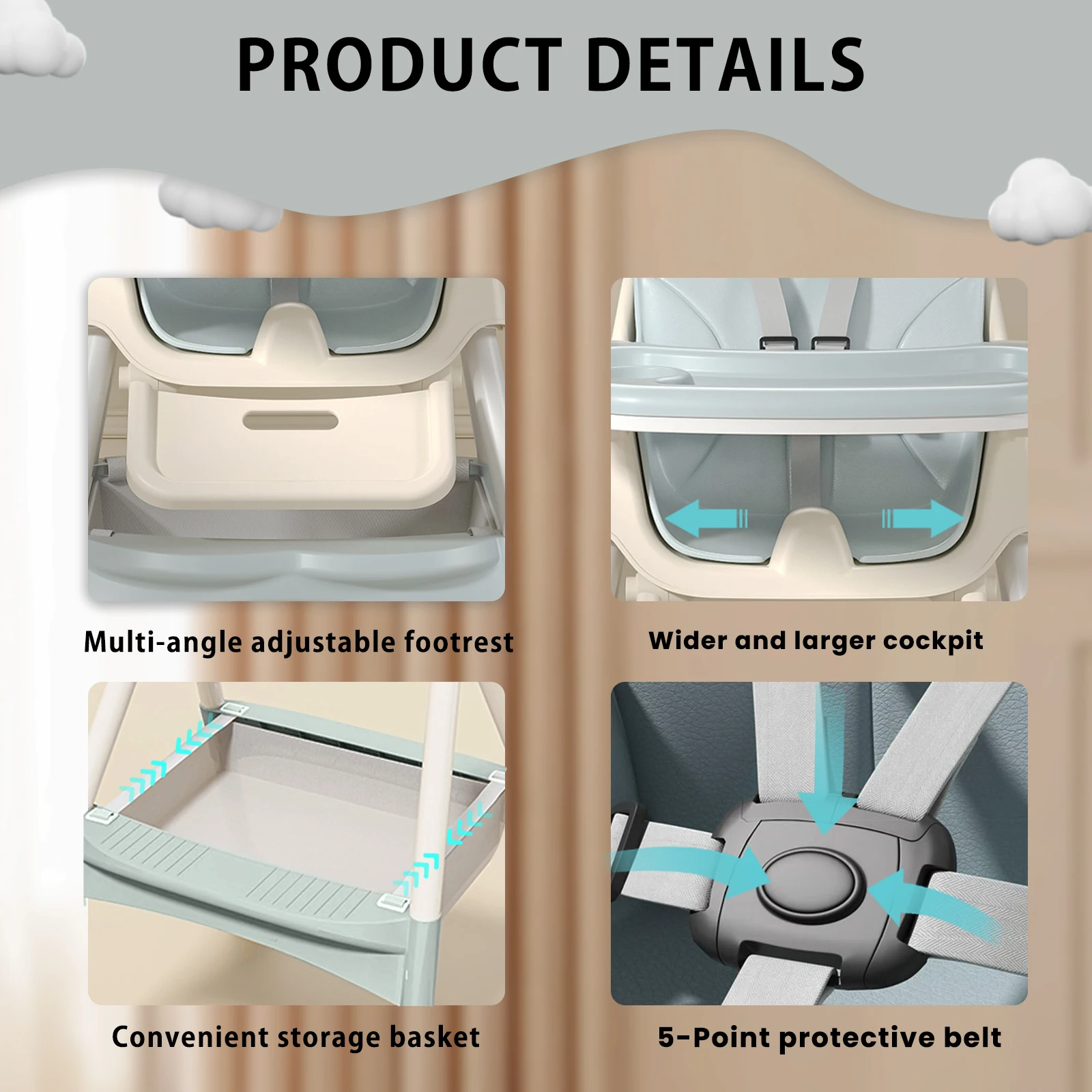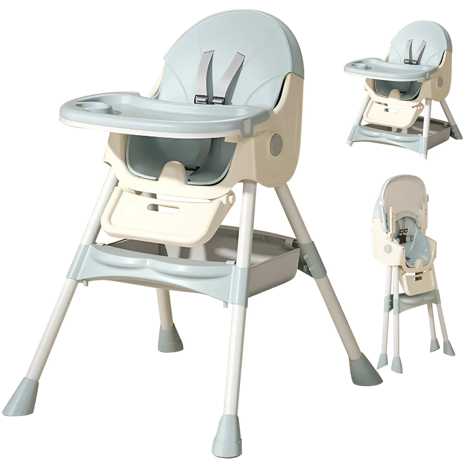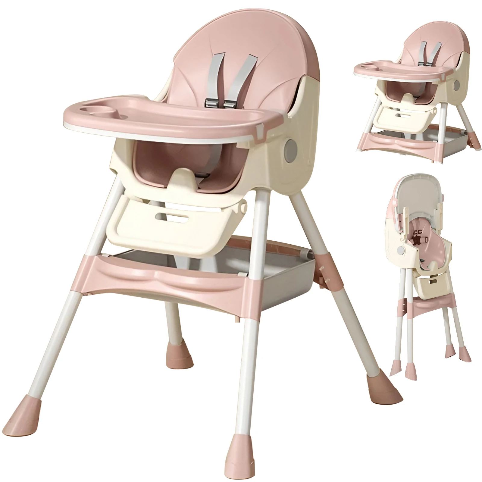 Fällbar barnstol – två i ett: mat- och lekstol med dubbel bricka och leksakshållare