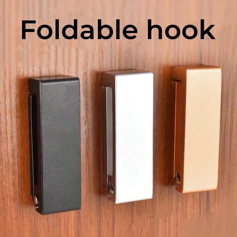 Fällbar vägg-/dörrkrok av aluminiumlegering – rosttålig enkrok för kläder, väskor och hattar