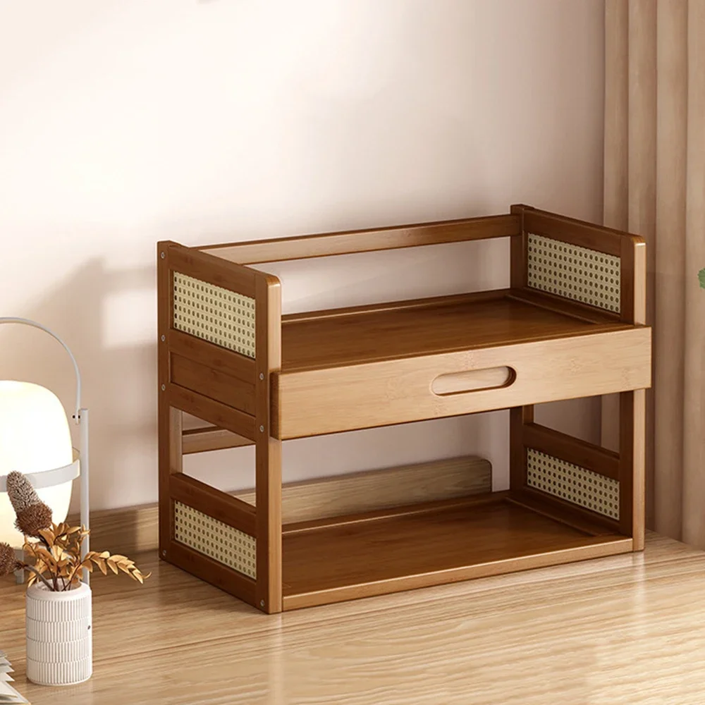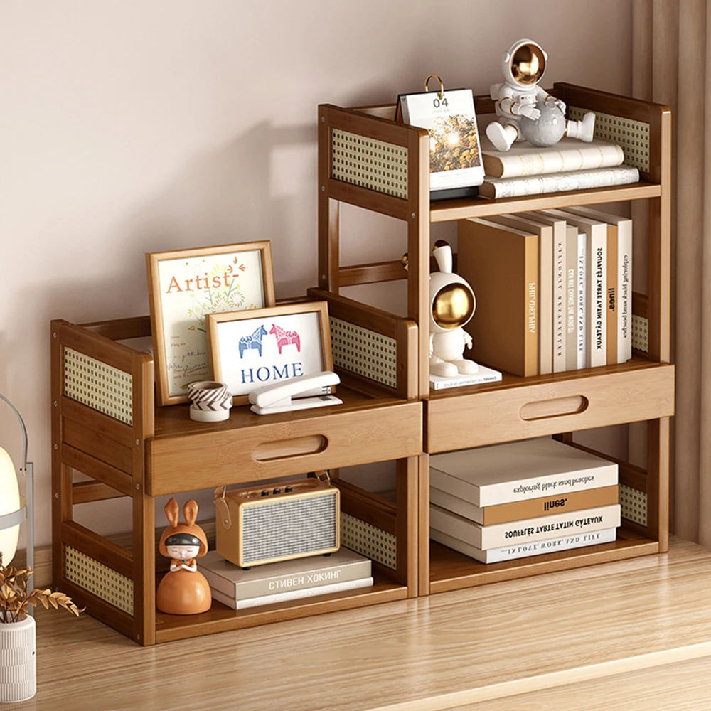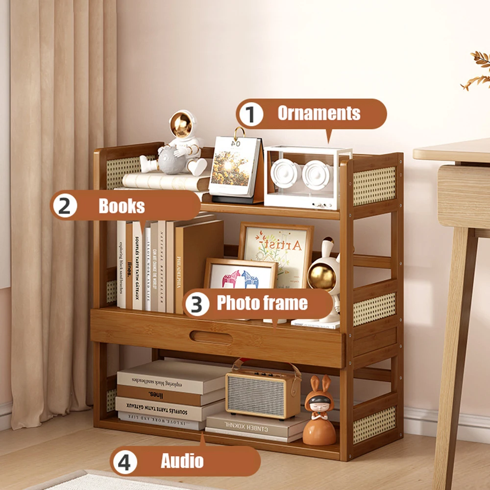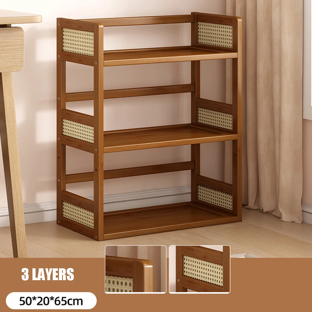 Flerfunktionell förvaringshylla för kontor och hem – enkel flerlagers bokhylla i trä (retro stil)