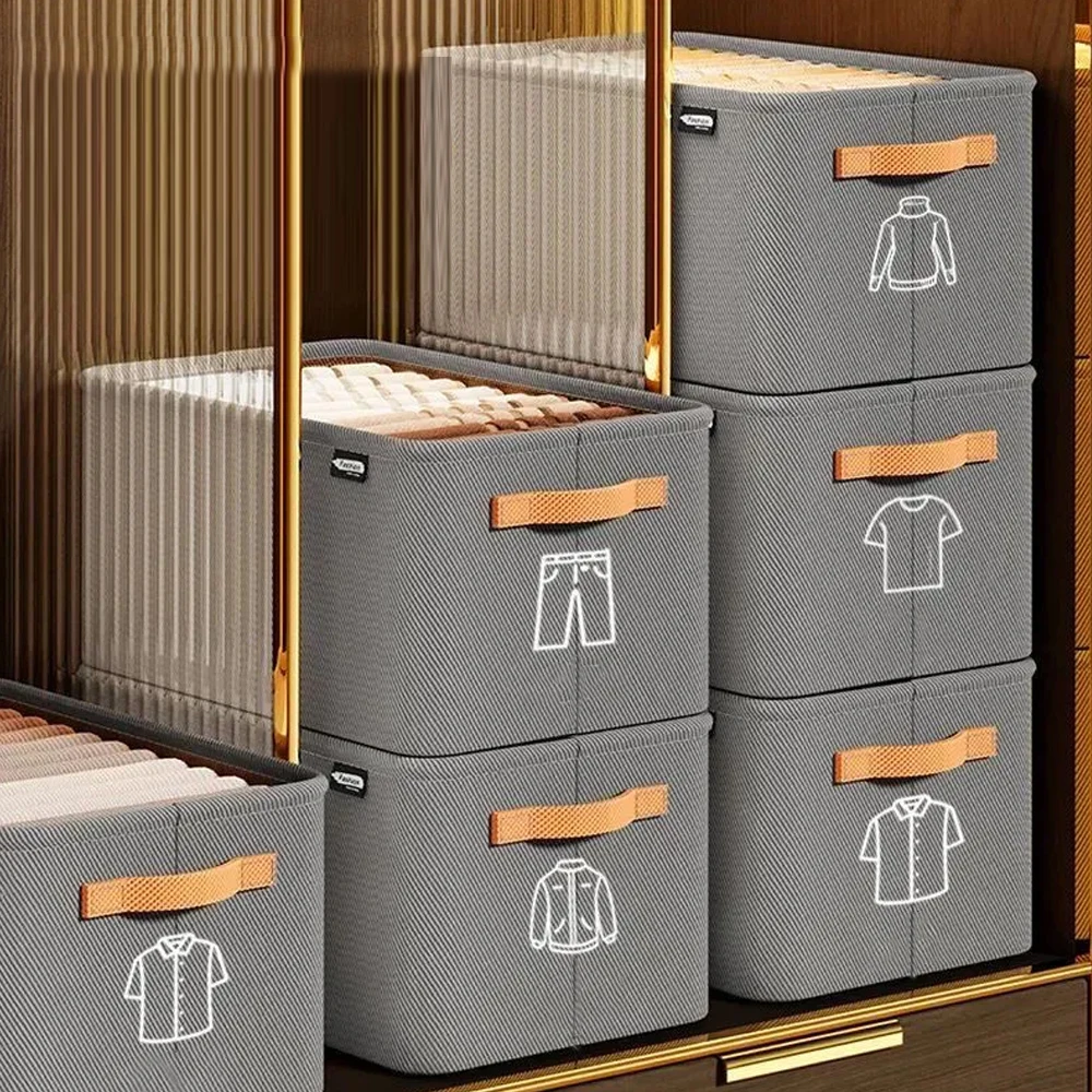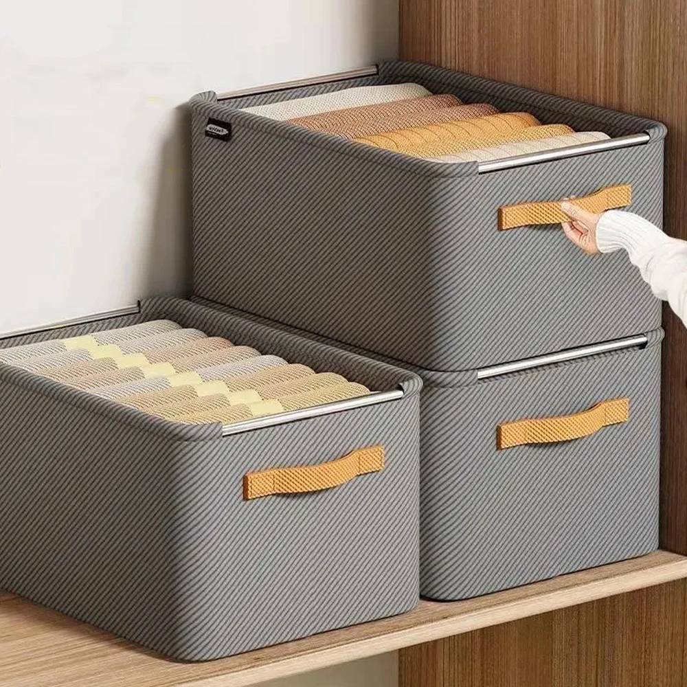 Hopfällbar garderobsförvaringsbox – tygförvaringslåda med handtag och stålram, mångsidig klädförvaring