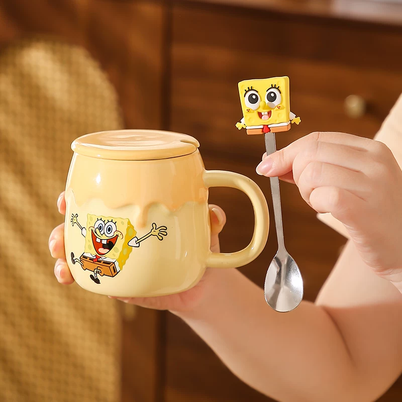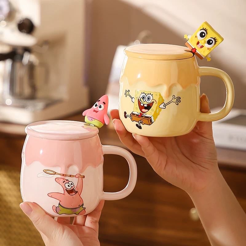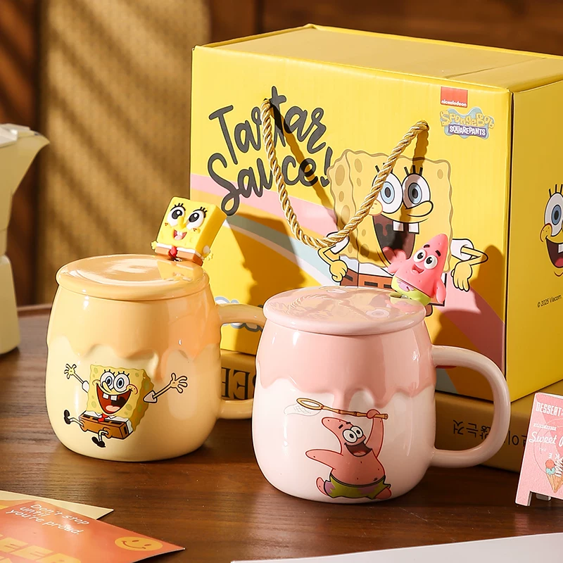 Keramikkopp med Svampbob Fyrkant och Patrick Star – med lock och sked