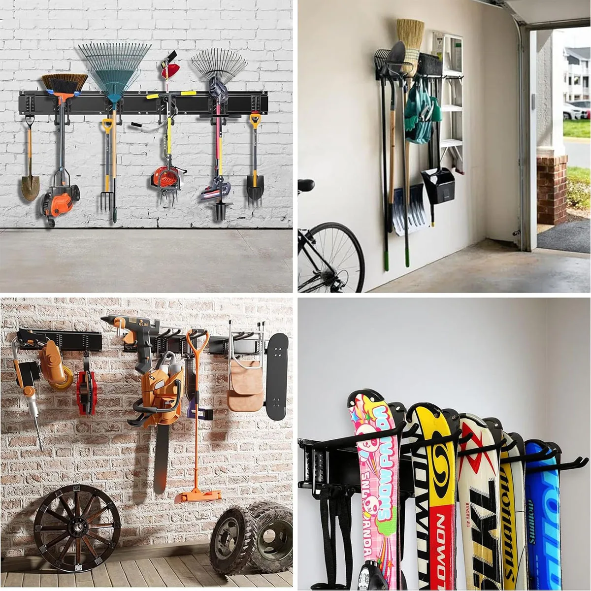 - Platsbesparande organisation: perfekt för verktyg, trädgårdsredskap och andra föremål – inomhus eller utomhus.
