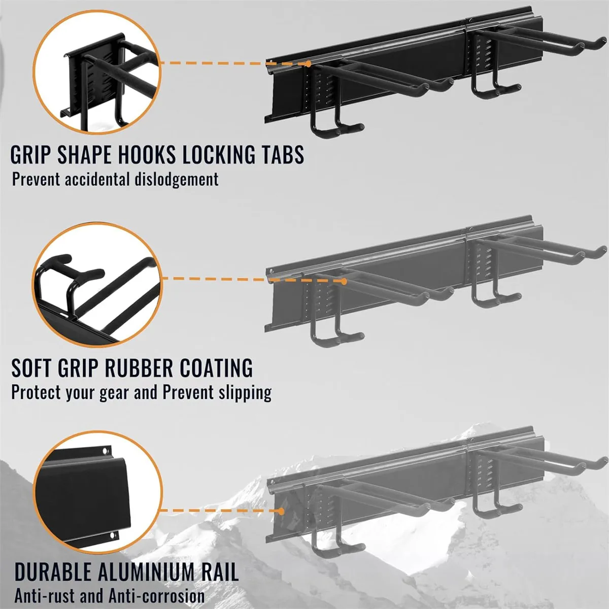 - Utmärkt bärkraft: raka gummibelagda dubbla krokar klarar upp till 45 kg vardera; böjd krok upp till 35 kg.