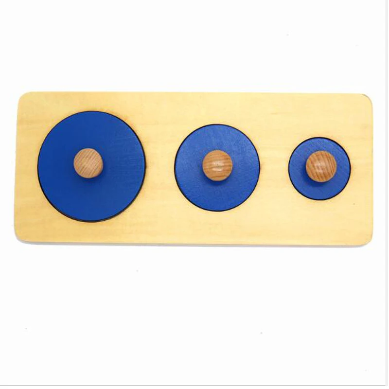 Träpussel inspirerat av Montessori-metoden som stödjer sortering och färglära hos barn. Designen visar geometriska former i en färgrik och barnvänlig uppsättning.