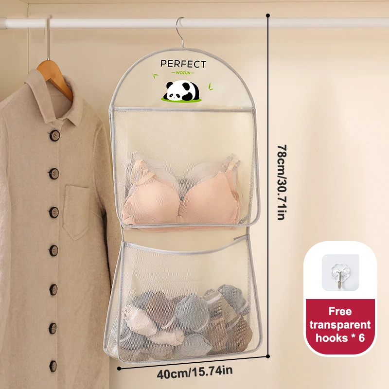 Nätförvaringshängväska för underkläder och strumpor – garderobsorganisatör med krok, 1/2/3 lager