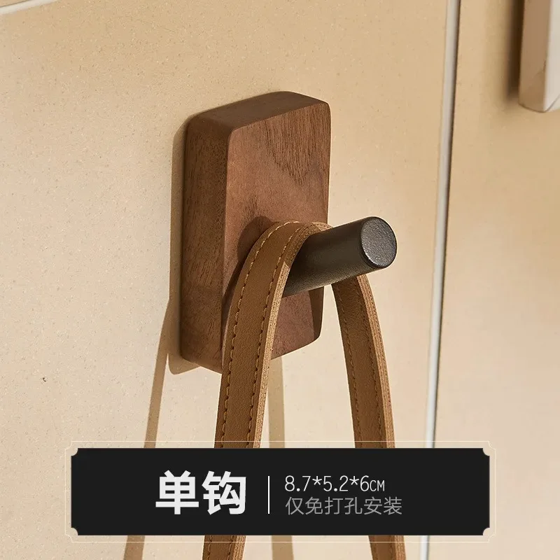 En stilren självhäftande krok i valnötsträ som enkelt monteras utan skruvar. Perfekt för vardagen i kök, hall eller badrum.