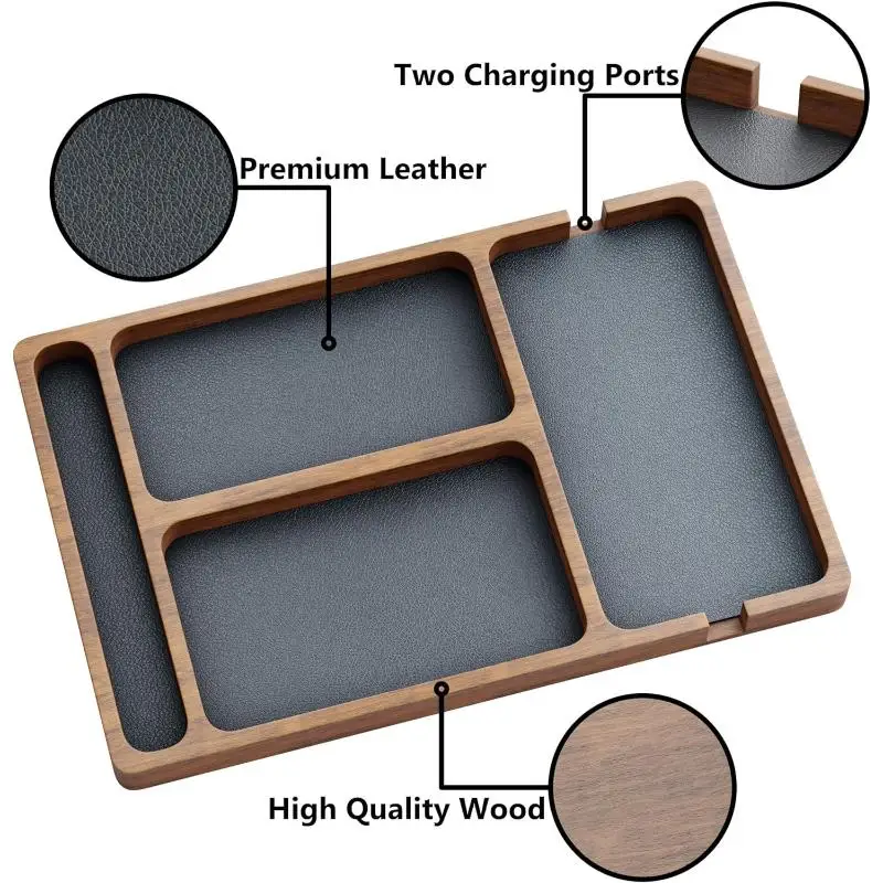 Denna skrivbordsorganisatör i massivt trä hjälper dig att hålla arbetsytan ordnad. Med flera fack kan du enkelt sortera telefoner, hörlurar och små kontorsartiklar samtidigt som den naturliga träfinishen tillför en varm, tidlös stil till skrivbordet.