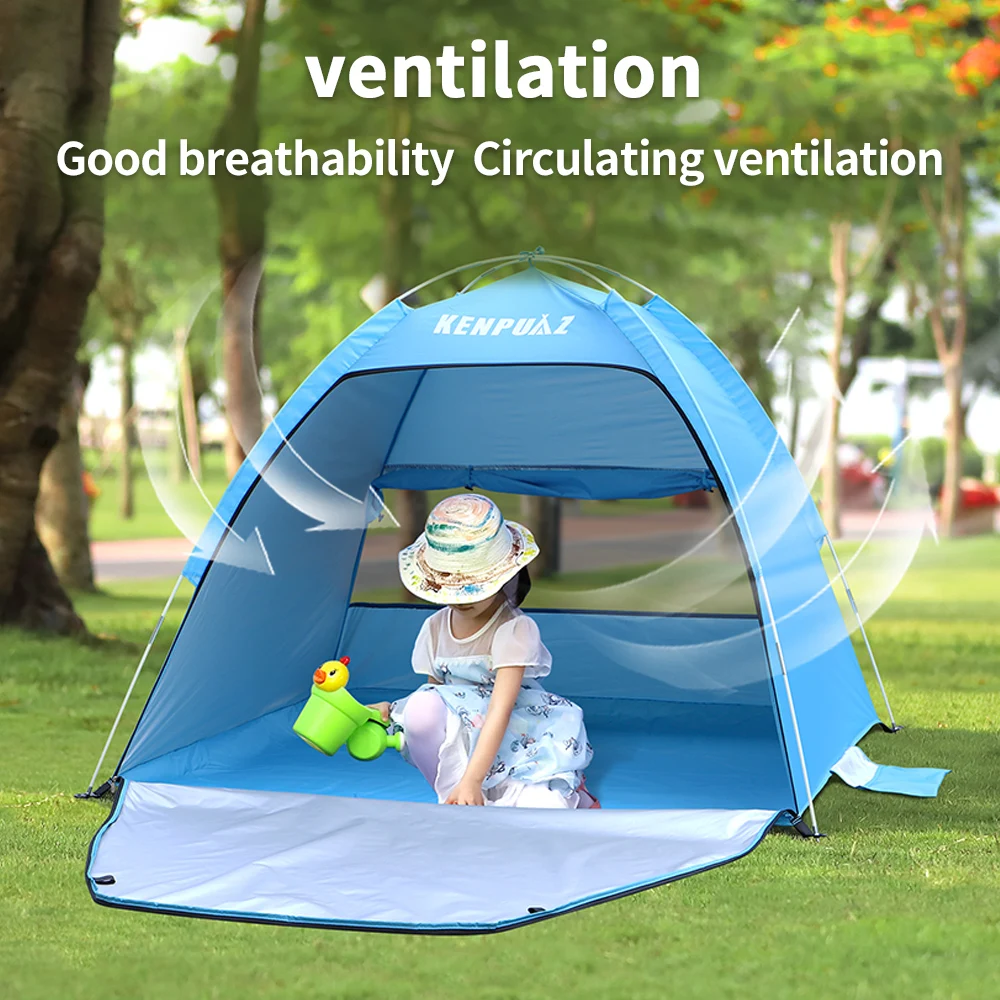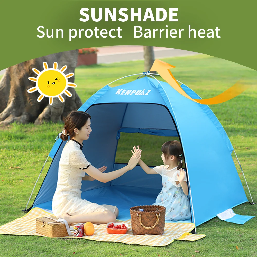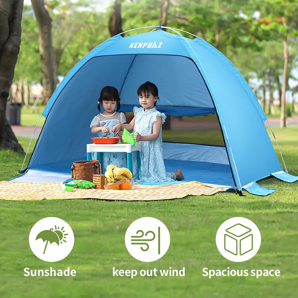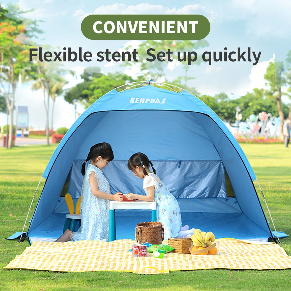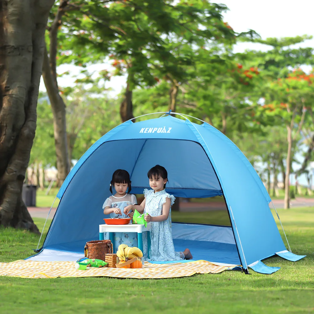 Ett familjevänligt tältsystem i strandblå färg som är portabelt och helt flexibelt. Finns i två storlekar och passar 1–2 samt 3–4 personer. Uppställningen är snabb och att vika ihop till reseformatet är smidigt: 12H x 42L x 12W cm och vikt ca 1,2 kg.