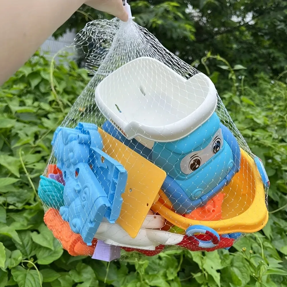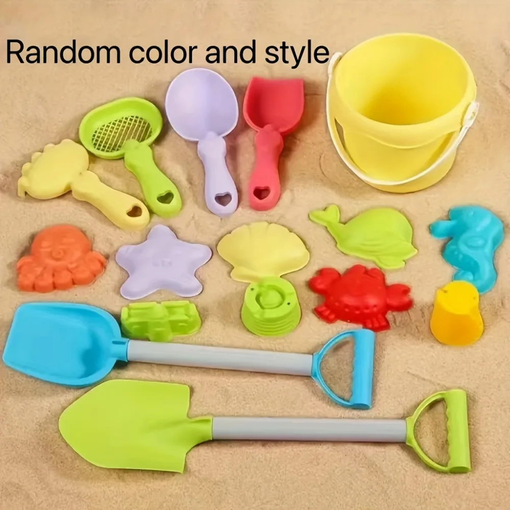Strandleksaker för barn: Sandsats med hink, spade, kratta och djur-/dinosaurieformar