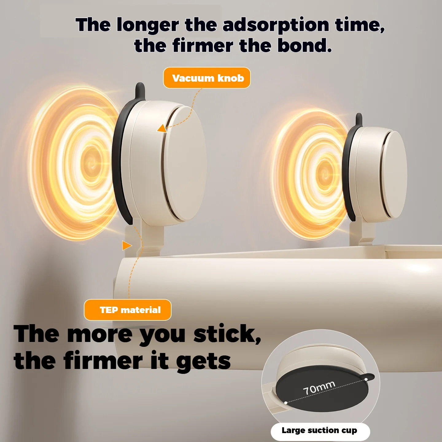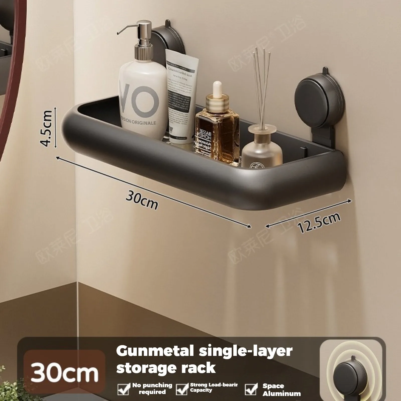 Installation: fästes enkelt genom sugkoppsbasen på släta ytor. Upp till en etagars lagringsyta för toalettrullar, produkter eller små föremål.