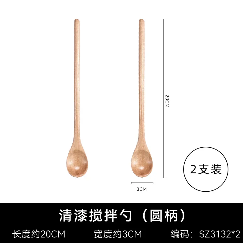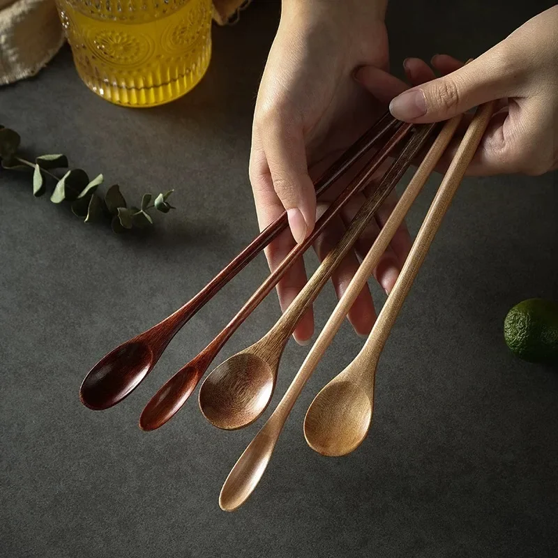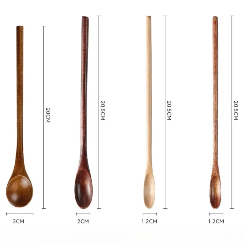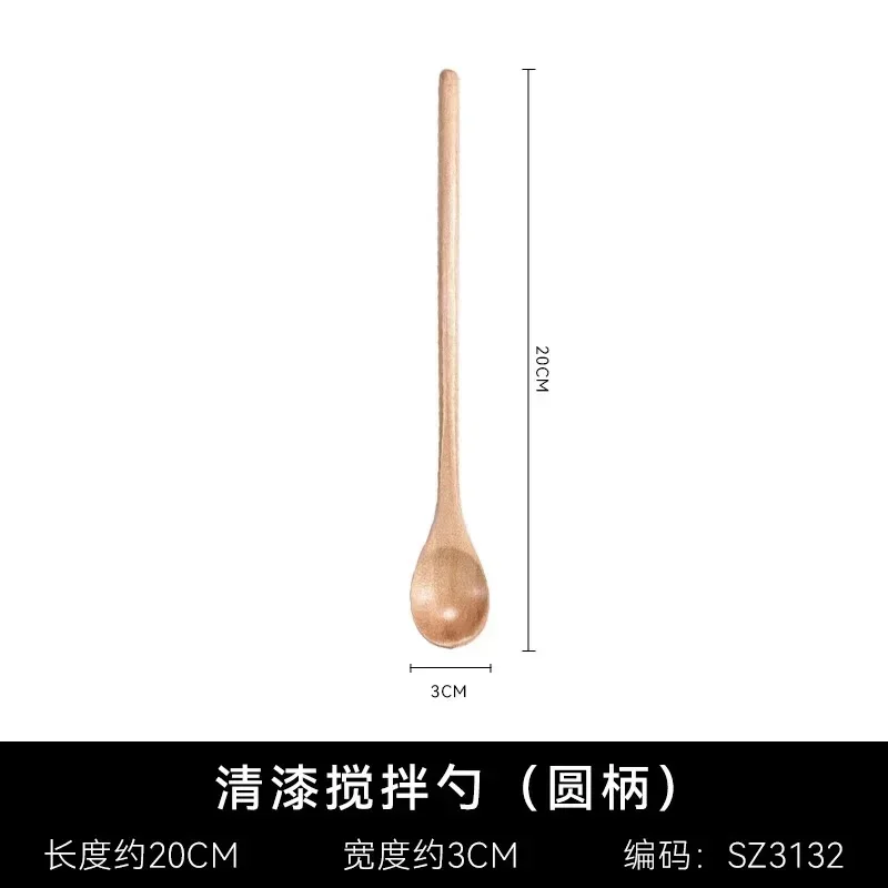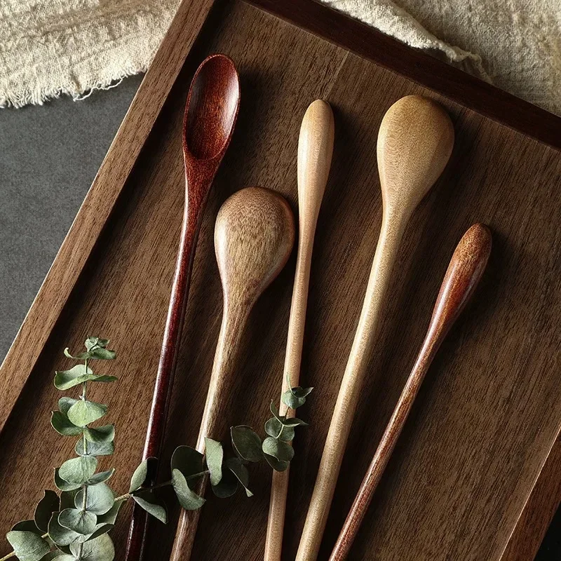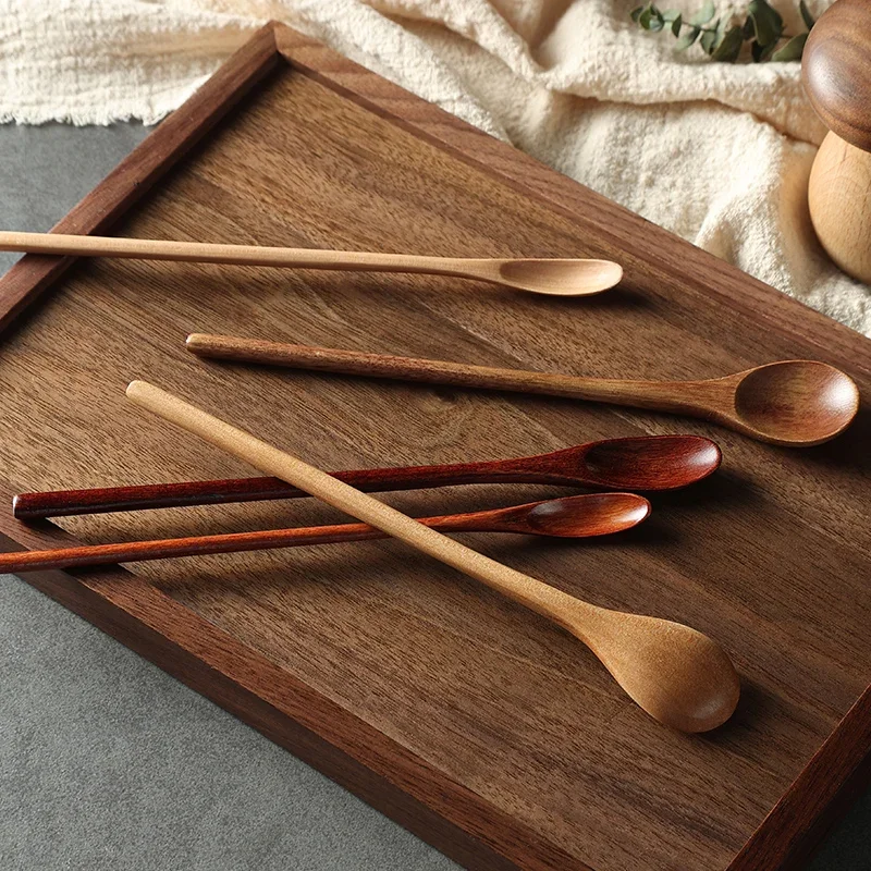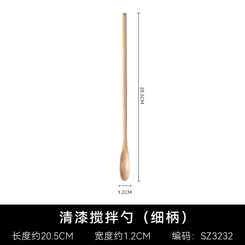 Träsked med långt skaft i naturligt trä passar för kaffestirring, dessert, soppa och andra blandningar.