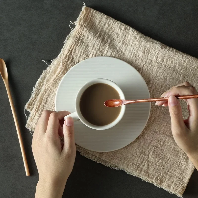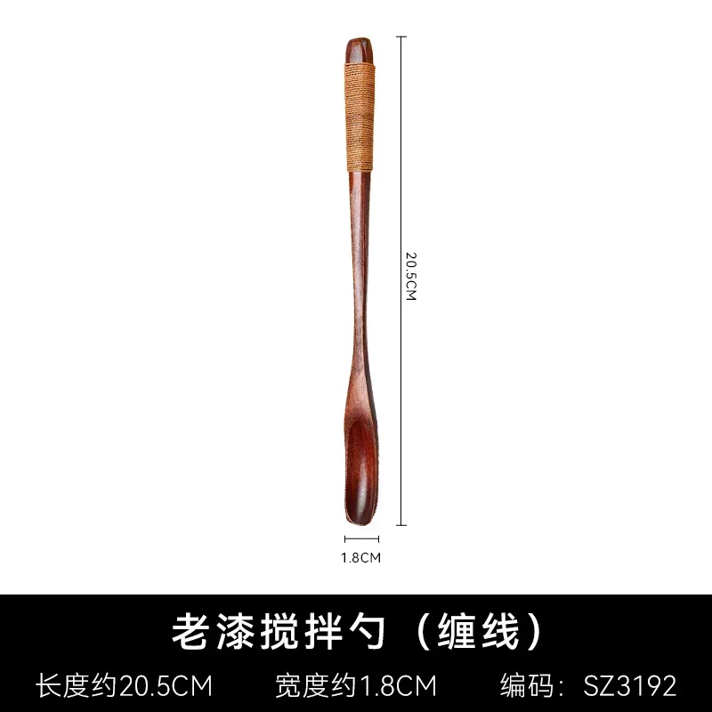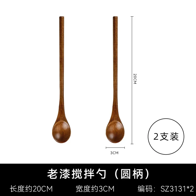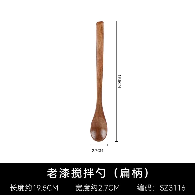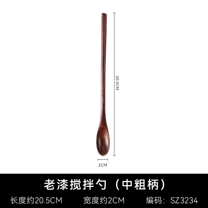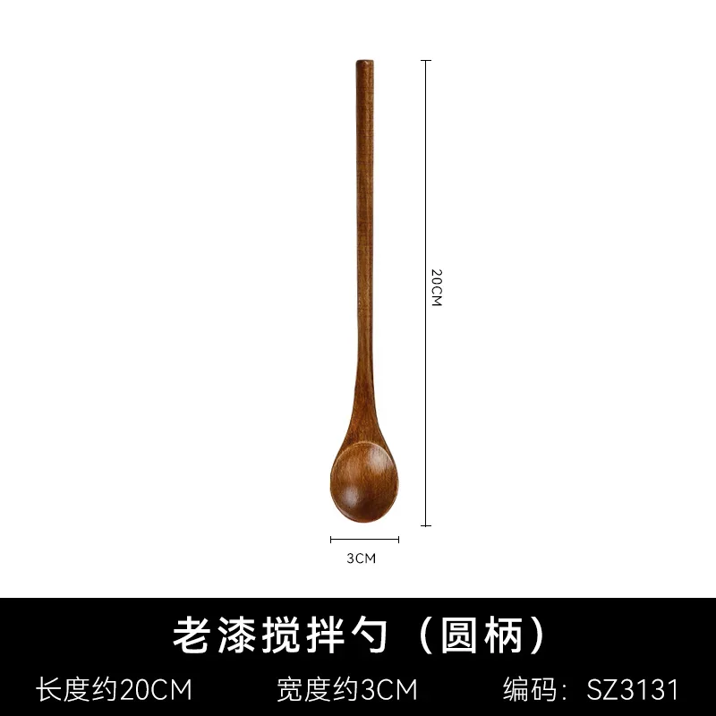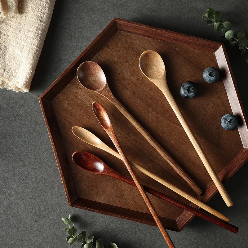 Träsked med långt skaft i naturligt trä passar för kaffestirring, dessert, soppa och andra blandningar.