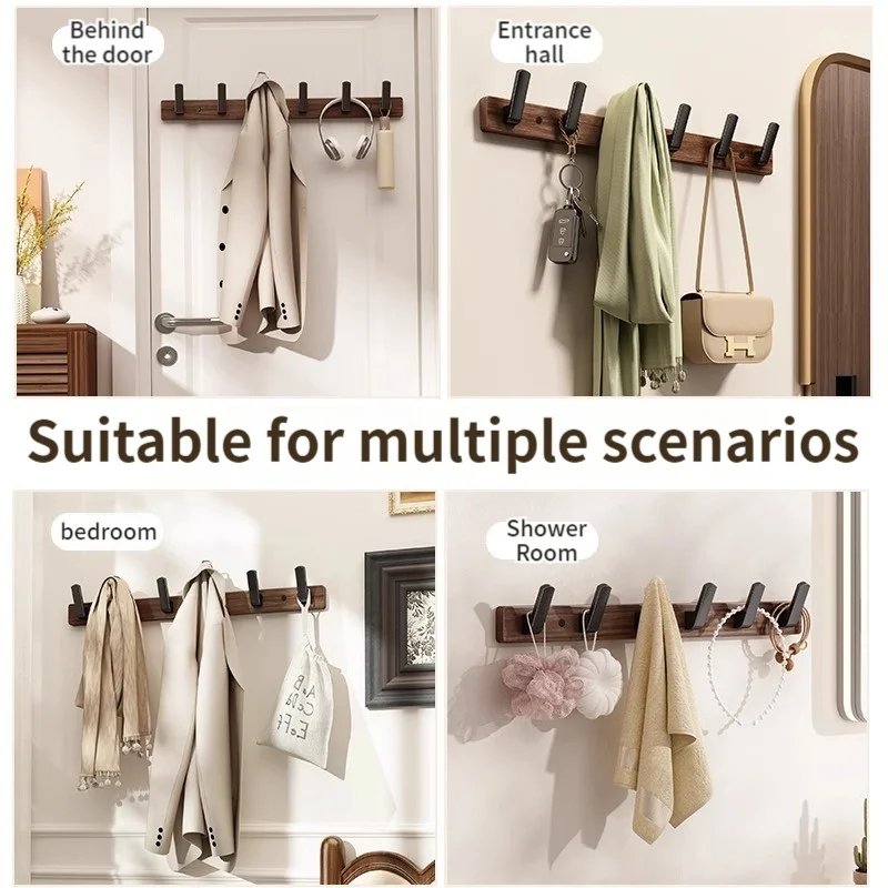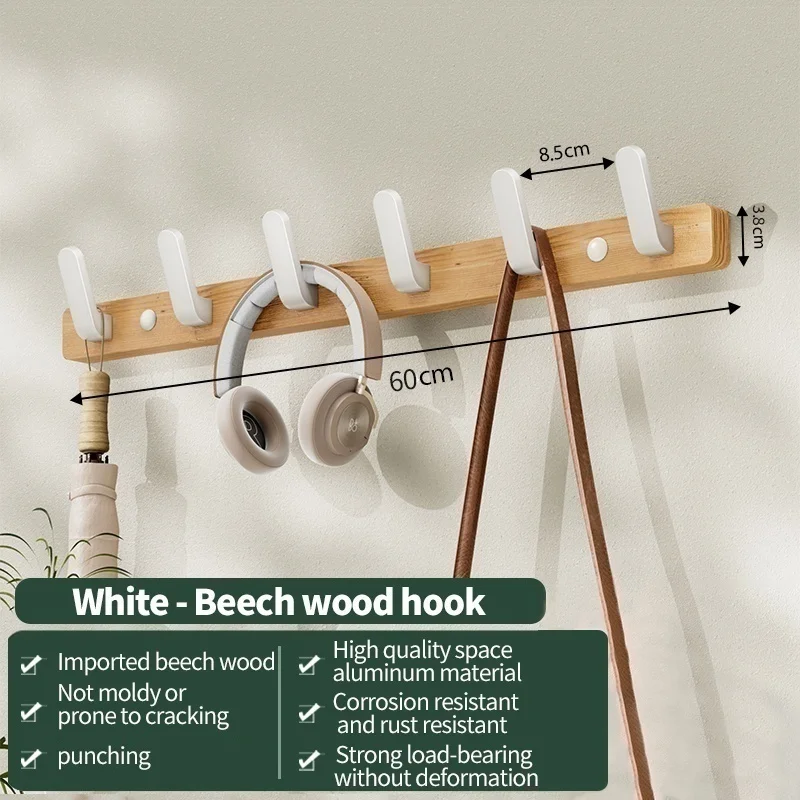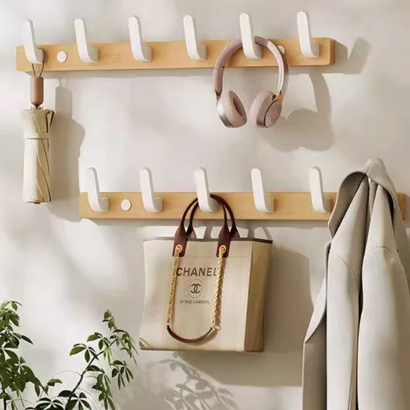 En stilren väggmonterad hängare i trä som förenar funktion och enkel design. Perfekt för upphängning av nycklar, hattar, scarfs, väskor och kläder i hallen, entrén eller badrummet.