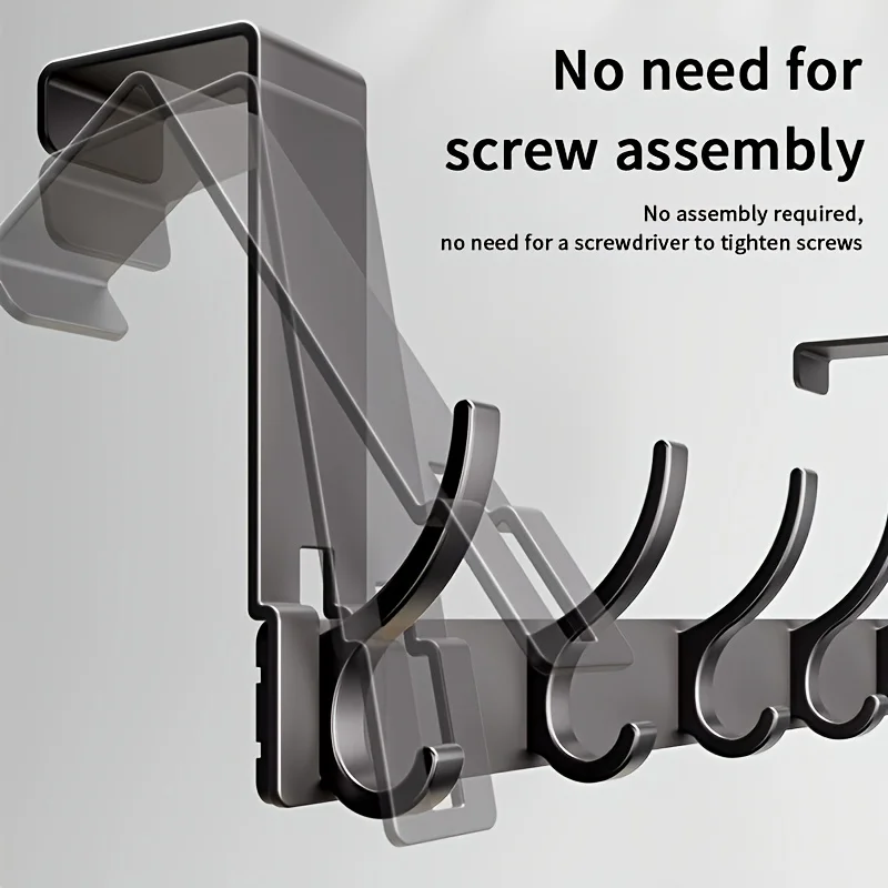 Väggmonterad dörrkrok i metall för förvaring bakom dörren eller på väggen; borrfri montering.