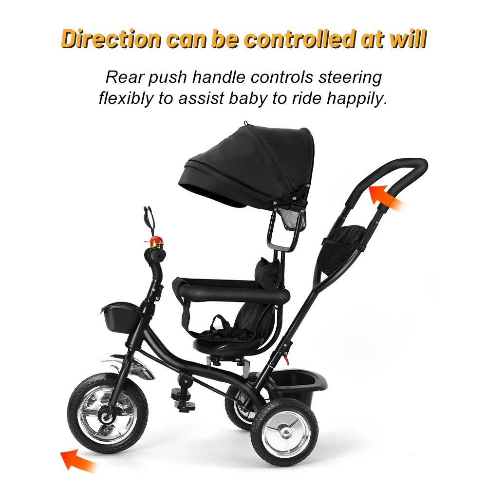 Växbar trehjuling för barn 1–5 år med vändbar sits och föräldrastyrt handtag – stor korg, väska och avtagbar skärm